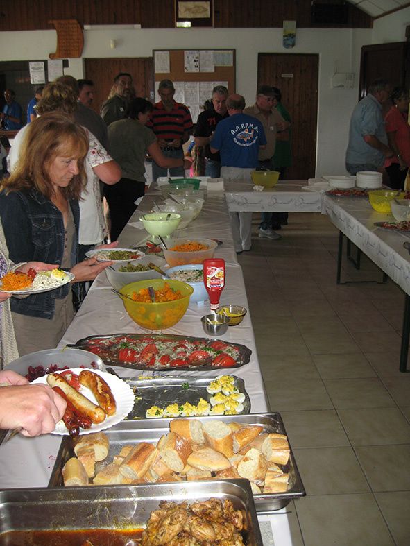 A midi tous les joueurs ainsi que de nombreuses personnes se sont réunis sous le chapiteau pour le repas. Au menu grillades à volonté et salades variées.